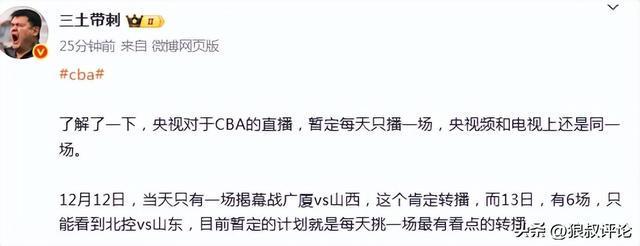 新赛季倒计时2天!媒体人:央视对于CBA的直播,暂定每天只播一场