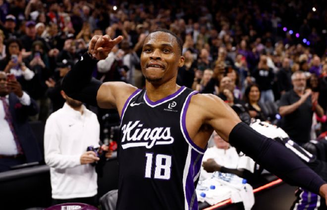 但最让人失望的球队还是国王队,管理层近几年可谓是谜一般的神操作,先后送走了哈利伯顿、福克斯等建队基石球星,却引进了已经在公牛队被证明过不成功的‘德罗赞、拉文’双人组,结果不言而喻,球队从季后赛常客一步步跌至如今的西部倒数第二,可谓是讽刺。 不过,失败的国王队依旧还是有亮眼的球员,威少就是其中胜负欲最强的。事实上,在今年夏天,37岁的威少还一度无人问津,很多人都认为他的职业生涯似乎走到了尽头。但最终在休赛期快要结束时,国王队才姗姗来迟伸出了橄榄枝,以一份1年360万美金的非保障合同签下了威少。虽然这份合同与巅峰期的4000万年薪对比明显,而威少却用表现证明了自己的价值远超这份合同。