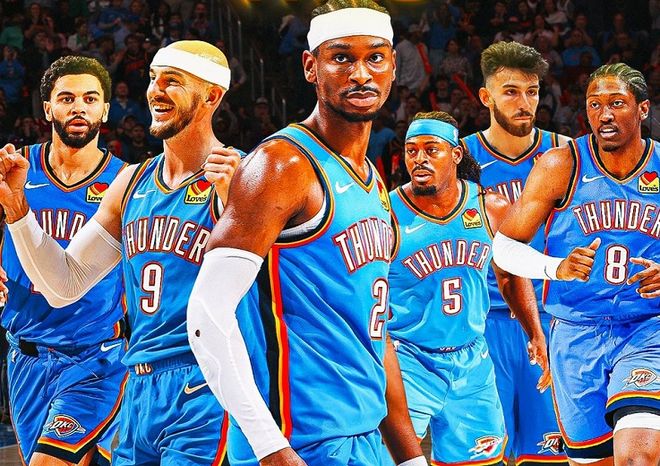 新赛季,雷霆队饱受伤病困扰,杰伦威、霍姆格伦、以赛亚乔、哈滕、维金斯、多特、卡鲁索等多位冠军功臣都因伤断断续续缺席了多场比赛。据统计,截至目前,雷霆队冠军首发五虎将亚历山大+多特+杰威+霍姆格伦+哈滕仅完整合体3次。即便如此,雷霆队还是取得了26胜4负的战绩,遥遥领先。在这个过程中,雷霆队防守效率(104.1)高居联盟第1位,净效率值+14.7刷新NBA历史纪录。