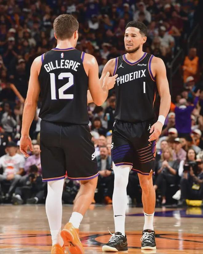 2024年夏天,太阳给了吉莱斯皮一份双向合同。2024-25赛季,他为太阳打了33场比赛,其中9场首发。场均出战14分钟,得到5.9分2.4篮板2.4助攻0.6抢断0.5失误,三项命中率:43%,43.3%,86.4%。本赛季场均得分提升8分!