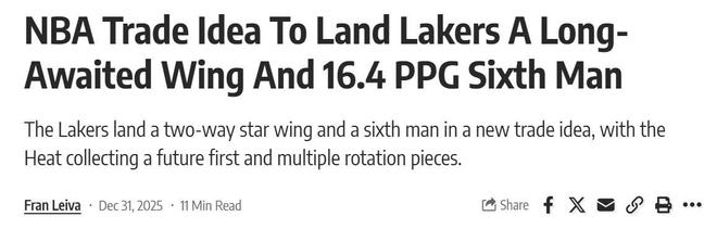 | 湖人5战4败短板明显,詹姆斯防守表现意外被公开嘲讽!美媒《FW》火速送上4换2针对性实现补强的交易方案,建议湖人卖掉首轮换取维金斯。