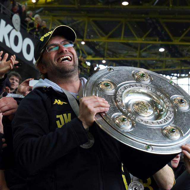 两年时间,克洛普在多特蒙德打造出了一支打法华丽、战斗力极强的铁军。2010-11赛季,多特蒙德夺回了阔别九年的德甲冠军,正式宣告从破产危机中走出,浴火重生! 2011-12赛季,多特蒙德德甲强势完成卫冕,拿到创德甲积分纪录的81分,在德国杯决赛中5-2大胜死敌拜仁夺冠,完成国内双冠王。