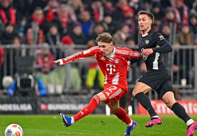 比赛刚开始5分钟,拜仁就进球了!迪亚斯在左侧下底传中,费舍尔竟然门前把球踢进自家球门。这粒乌龙球让人感到有些匪夷所思。拜仁取得梦幻般的开局。6分钟后,奥利塞送出精准长传球,迪亚斯前插,在禁区内卸下皮球后起脚射门,结果踢偏了。第13分钟,沃尔夫斯堡扳平比分。佩契诺维奇单刀低射破门。
