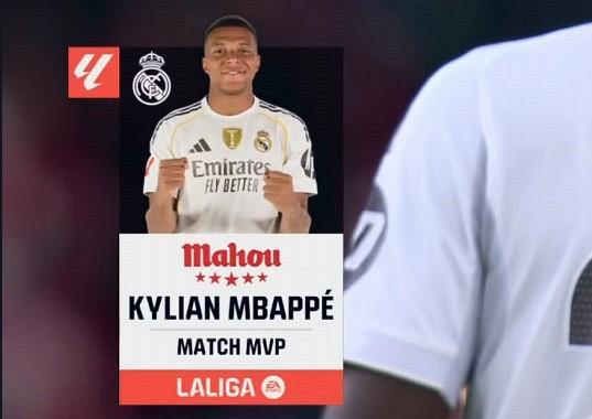 | 官方消息,姆巴佩当选毕尔巴鄂竞技对阵皇家马德里一役全场最佳。