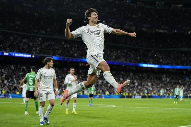 图片来源CFP 其实熟悉皇马的人对于贡萨洛-加西亚的名字不会陌生,上赛季在安切洛蒂麾下,这位身材不算高大,却冲击力不错的年轻人就获得了一些机会,而在阿隆索到来之后,虽然他的顺位还是比较靠后,但在进入到12月后,年轻的加西亚已经逐步得到了一些信任,尤其在姆巴佩受伤无法登场的这场比赛,皇马16号完全掌控了比赛。 第20、50和81分钟,加西亚分别用左右脚和头,连入3球,达成了这个“完美”帽子戏法,皇马也在没有“姆总”的情况下,5比1大胜本赛季表现一直都算稳定的贝蒂斯,继续紧追巴萨。赛后几乎所有媒体都把关注点放在了年轻的加西亚身上,毕竟21岁286天的他就是这个夜晚最闪亮的“星”。