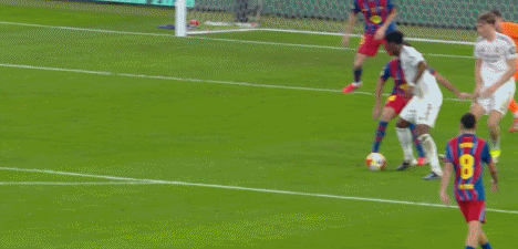 第8分钟,维尼修斯疑似射门,埃里克-加西亚将球挡出