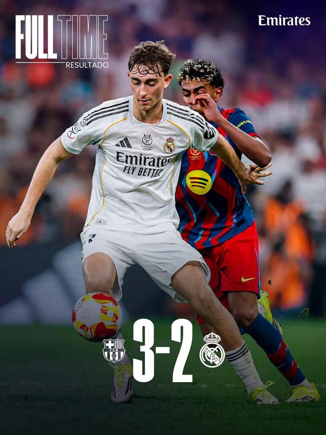 | 皇马球迷网ChinaReal 2025/26 西超杯/决赛 2026.01.12/03:00 沙特阿拉伯/吉达/阿卜杜拉国王体育城 巴塞罗那 3 皇家马德里 2 36' 1-0 拉菲尼亚 <费尔明< pan> 45'+2 1-1 维尼修斯 <贡萨洛< pan> 45'+4 2-1 莱万多夫斯基 <佩德里< pan> 45'+6 2-2 贡萨洛 73' 3-2 拉菲尼亚 X(@realmadrid) hupu bilibili 皇家马德里/4-4-2 哈维.阿隆索 01 库尔图瓦 GK 08 巴尔韦德 C 67' 18 卡雷拉斯 17 劳尔.阿森西奥 24 赫伊森 76' 05 贝林厄姆 06 卡马文加 82' 11 罗德里戈 14 琼阿梅尼 07 维尼修斯 82' 16 贡萨洛 76' 67' 15 居莱尔 76' 04 阿拉巴 / 10 姆巴佩 82' 19 塞瓦略斯 / 30 马斯坦托诺 巴塞罗那/4-3-3/弗里克 13 霍安.加西亚 GK / 03 巴尔德,05 库巴西,23 孔德,24 埃里克.加西亚(83' 18 赫拉德.马丁) / 08 佩德里,16 费尔明(66' 20 奥尔莫),21 德容 C(90'+1 红牌) / 09 莱万(66' 07 费兰),10 亚马尔(90'+3 04 阿劳霍),11 拉菲尼亚(83' 14 拉什福德) 14' 维尼修斯人球分过高速突入禁区,单刀推射被没收。 33' 贡萨洛反越位半单刀捅射,乔安-加西亚将球没收。 36' 拉菲尼亚低射远角破门,1-0。 45+2' 超级个人秀!维尼修斯一条龙过穿低射破门,1-1! 45+4' 莱万单刀挑射中柱破门,2-1。 45+6' 赫伊森头球中柱,贡萨洛补射破门,2-2! 51' 维尼修斯弧顶劲射被扑出,插上再补打偏。 71' 亚马尔抢点劲射,库尔图瓦神扑救主。 73' 拉菲尼亚扫射变向破门梅开二度,3-2。 90'+1 德容踹中姆巴佩小腿,裁判直红将其罚下。 90'+6 卡雷拉斯绝佳机会推射,加西亚将球没收。 90'+7 阿拉巴绝佳机会头球攻门,加西亚再次将球没收。 比赛结束,皇家马德里不敌老对手巴塞罗那,憾失本季西超杯。 原文 / 比赛集锦 |