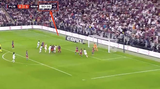 第一点,贡萨洛加西亚的进球,应该无效。 众所周知,上半场补时阶段,双方进入了疯狂的进球大战。“3分钟”的补时,直接打进了3球。但是这个“3分钟”却达到了6分钟。 补时的第46分07秒,维尼修斯打进了一球,这个时候应该延续一分钟,也就是踢到45+4分钟。而莱万多夫斯基的第二球,是在48分钟24秒打进的,所以这个进球应该在有效的补时时间之内。而在补时期间,再次产生进球,按道理应该再次延长一分钟,也就是比赛在45+5就该结束了。