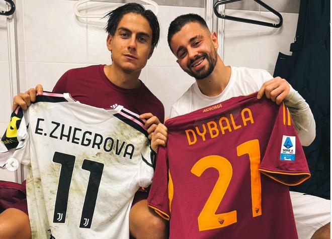 在尤文对阵罗马的比赛结束后,热格罗瓦与迪巴拉交换了球衣