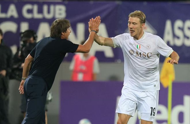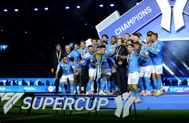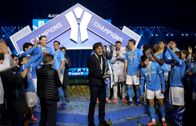 孔蒂以霍伊伦和麦克托米奈为例,这两位在曼联一度挣扎的球员,如今在那不勒斯重获新生。 “如果现在大家都在谈论他们,那肯定是有原因的,这意味着我和教练组做对了一些事。” 与孔蒂的审慎相呼应的是俱乐部主席德劳伦蒂斯毫无保留的支持。他将孔蒂誉为 “一位大师” ,并自豪地表示自己在选择教练上“很少犯错”。 德劳伦蒂斯特别提到,自马拉多纳时代以来,这是那不勒斯首次在单一年份赢得两座重要奖杯,意义非凡。他鼓励球迷继续梦想,但同时也提醒球队要保持冷静和专注,因为挑战永不停歇。 一场酣畅淋漓的胜利,一座金光闪闪的奖杯,搭配的却是一位主帅异常冷静的全局研判。 孔蒂的言论,与其说是谦逊,不如说是一份基于现实的战略蓝图。他正在将那不勒斯从“冠军惊喜”的定位,向一个更稳定、更具持续竞争力的“豪门架构”引导。