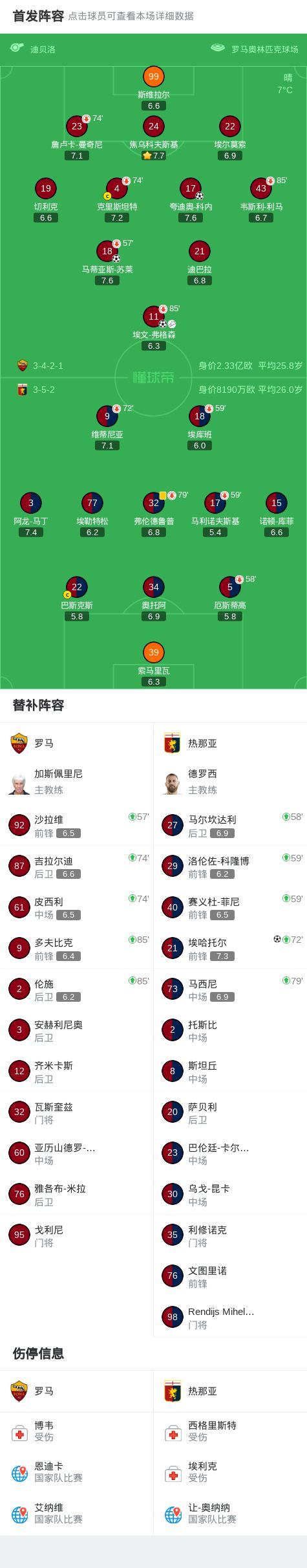 第19分钟,科内禁区推射变线破门,罗马2-0热那亚