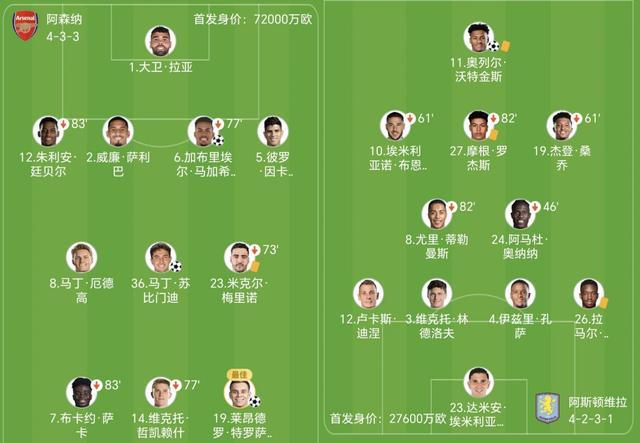 第69分钟,廷伯送出传球,特罗萨德跟进劲射得分,阿森纳3-0! 第78分钟,刚替补登场的热苏斯完成破门,4-0! 下半场补时第4分钟,沃特金斯为维拉扳回一球,但已无法改变战局,4-1!