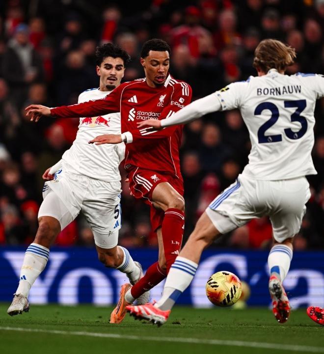 作为本赛季的英超升班马,利兹联此前表现不佳,一度深陷降级区,不过在第十三轮输给曼城后,利兹联开启了不败模式,随后面对切尔西、利物浦、布伦特福德、水晶宫和桑德兰,取得了2胜3平的战绩,成功逃离降级区。 面对赛季首回合交锋逼平自己的利兹联,利物浦此役在主场不敢有丝毫保留,在4231的阵型中,让阿利森镇守龙门,罗伯逊、范戴克、科纳特和布拉德利构筑后防,琼斯和赫拉芬贝赫搭档双后腰,维尔茨、索博斯洛伊和弗林蓬坐镇中场,单箭头则是埃基蒂克。