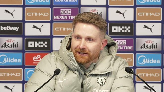 麦克法兰:“是的。我们并没有预料到他们上半场会以那样的方式站位。他们在最前线摆出了六人的结构,我们赛前准备的应对方式稍有不同。结果是他们掌控了大量球权,我们被迫回撤,埃斯特旺和佩德罗有时甚至被压到防守五后卫的位置,这让他们踢得非常有节奏、非常舒服。这不是我们希望看到的比赛形态。所以我们在中场休息时做出了调整,改为更多人盯人式的防守方式,以加强压迫、打乱他们的节奏,并迫使他们更多地选择长传。另外,我认为安德雷-桑托斯在中场休息时登场,同时把恩佐的位置前移一个区域,这一点非常关键。安德雷的表现非常出色,他在中场的控制力极强。无论是有球还是无球状态下,这次阵型调整以及换人都对我们帮助很大。” 他继续说道:“我也认为德拉普的登场是一次非常好的换人,他给了我们一个更直接的进攻出口,能够牵制对方中卫。当然,我们可以谈战术,但我认为最令人印象深刻的,还是球员们的精神层面。在阿提哈德,半场0-1落后,临时主帅,赛前和比赛当天还有球员生病、受伤,这么多变数,所有人都觉得情况会变得更糟。但他们能够迅速调整,理解信息并在场上执行出来,这充分说明了这支球队的性格与品质。很多年轻球员在这种时刻可能会崩溃,但他们在下半场的表现堪称出色。”