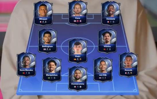 门将:多纳鲁马 后卫:努诺-门德斯、马尔基尼奥斯、范戴克、孔德 中场:贝林厄姆、维蒂尼亚、佩德里 前锋:姆巴佩、凯恩、登贝莱 第十二人:亚马尔&奥利塞 在为这支队伍选择队长时,穆西亚拉选择了自己的拜仁队友哈里-凯恩。 【上咪咕独家看英超】 |