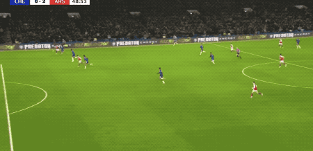 3分钟后,切尔西在前场打出流畅配合,佩德罗转身不看人,把球传到中路,但并没有队友跟进。