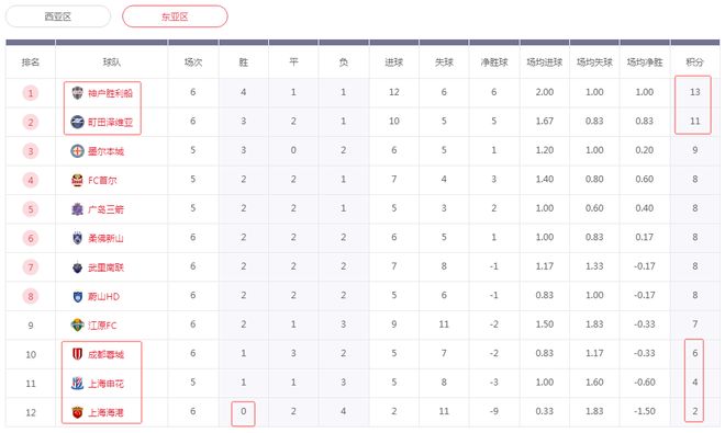 积分榜方面,神户胜利船绝平成都蓉城,他们就还是守住了第1的位置。町田泽维亚赢球后,暂时超过墨尔本城升至第2。上海海港艰难逼平柔佛新山,才拿到本赛季第2个积分,继续坐牢副班长之位,落后第8的蔚山HD6分,少8个净胜球,基本上已经出局。成都蓉城落后第八2分,还有些许希望,目前中超三强是继续包揽垫底的三个位置。