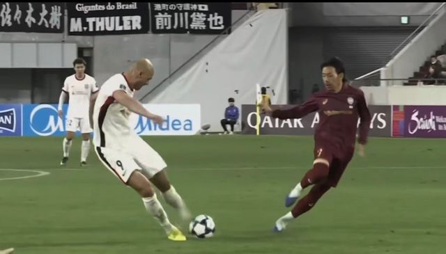 第18分钟,胜利船从边路渗透成功后,突破蓉城的防线,武藤嘉纪背身拿球后,冷静射门,1-0!