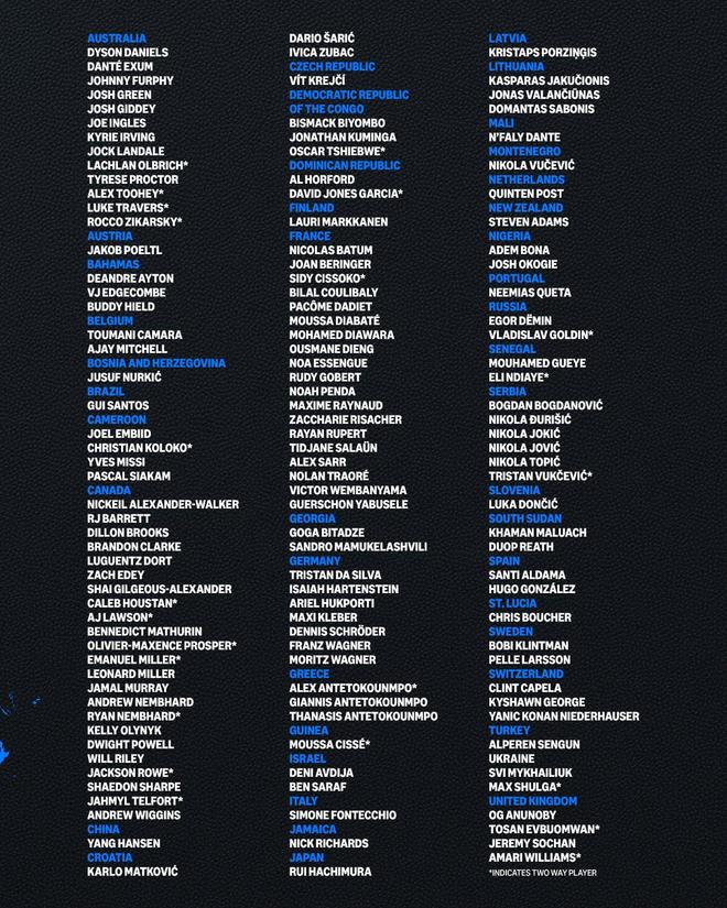 | 12月21日为世界篮球日,NBA官方制作海报分享NBA国际球员分布情况,并统计了一份完整名单。