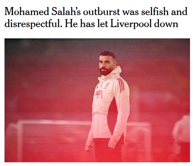 这不是萨拉赫第1次发脾气。2024年4月,利物浦客战西汉姆的比赛,萨拉赫与主帅克洛普发生争吵,萨拉赫说了7个词:“如果我说话,就会惹上麻烦(If I speak, there will be fire)。”1年半之前,渣叔还能镇住萨拉赫,但如今,斯洛特很难管住埃及巨星。 TA指出,萨拉赫暗示自己明年1月可能离开利物浦,这样的言论极具煽动性。萨拉赫全程保持冷静、沉着,这显然是有预谋的炮轰。萨拉赫转身离去,却点燃了利物浦的熊熊烈火。 萨拉赫认为自己的自尊心受到打击,认为自己受到不公平待遇:科纳特、加克波的状态都很差,为何他们能首发,自己却不行?
