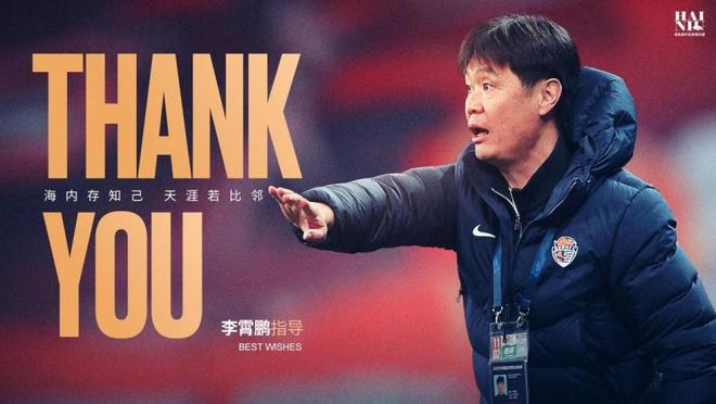海牛俱乐部官方感谢李霄鹏指导及其团队为球队做出的贡献,祝福未来一切顺利。并且盛赞李霄鹏:作为青岛人,自上任起对家乡球队投入全部的精力和热爱。